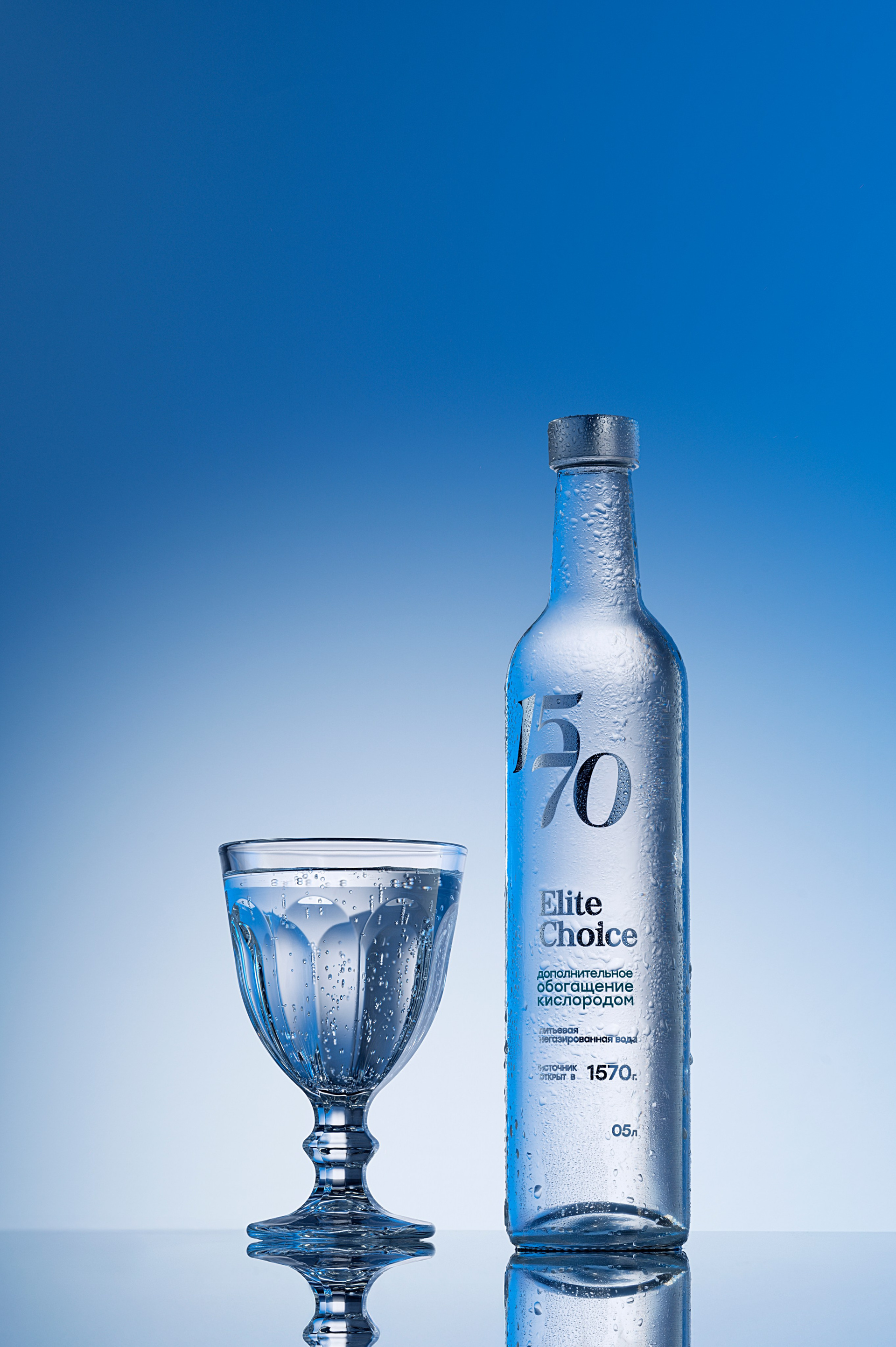 Концепция съёмки строилась на идее натуральной чистоты и премиальной минималистичности: мы использовали прозрачные текстуры, мягкие блики и акцент на кристальную геометрию бутылки, чтобы подчеркнуть природное происхождение воды. Световые схемы, холодные оттенки и лаконичные композиции создали ощущение свежести, глубины и высокого качества, формируя эстетичный визуальный язык для всей линейки.