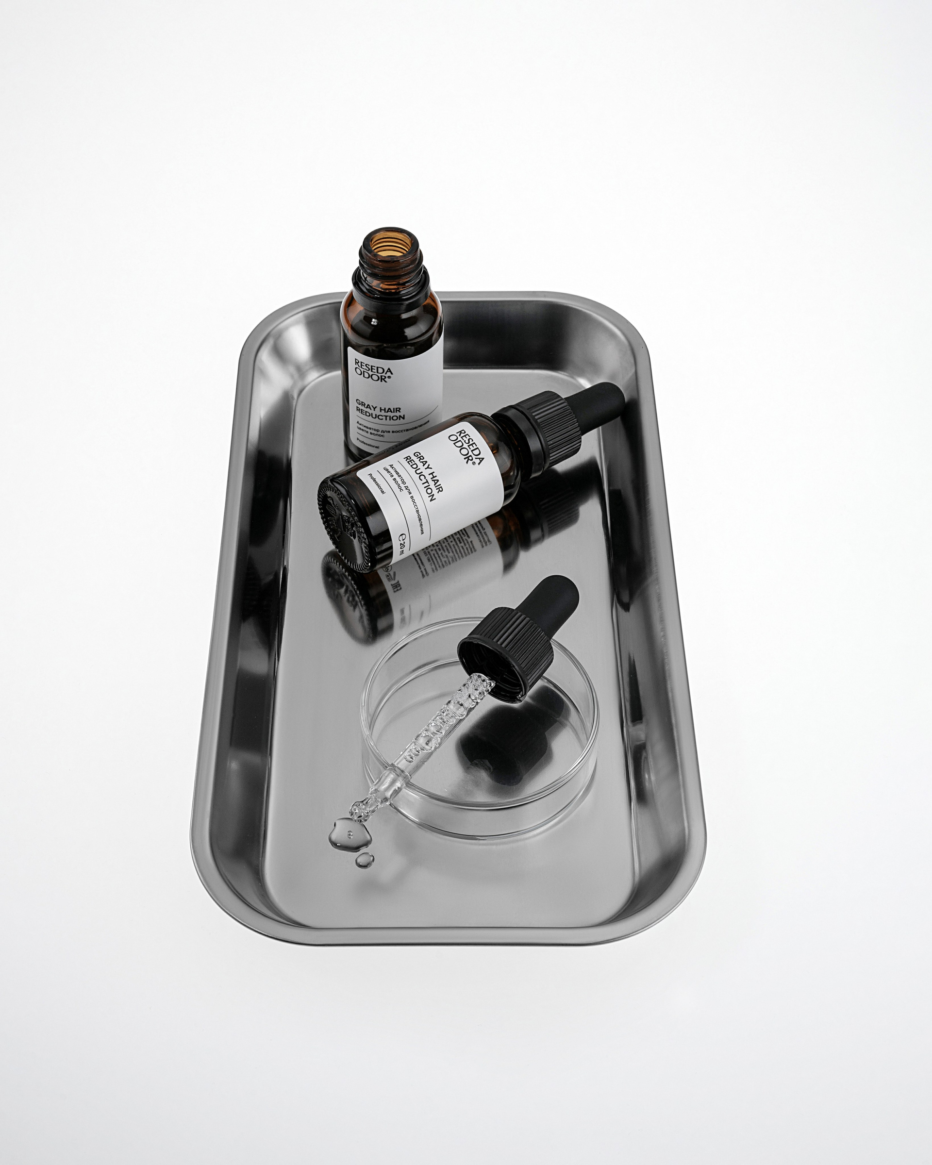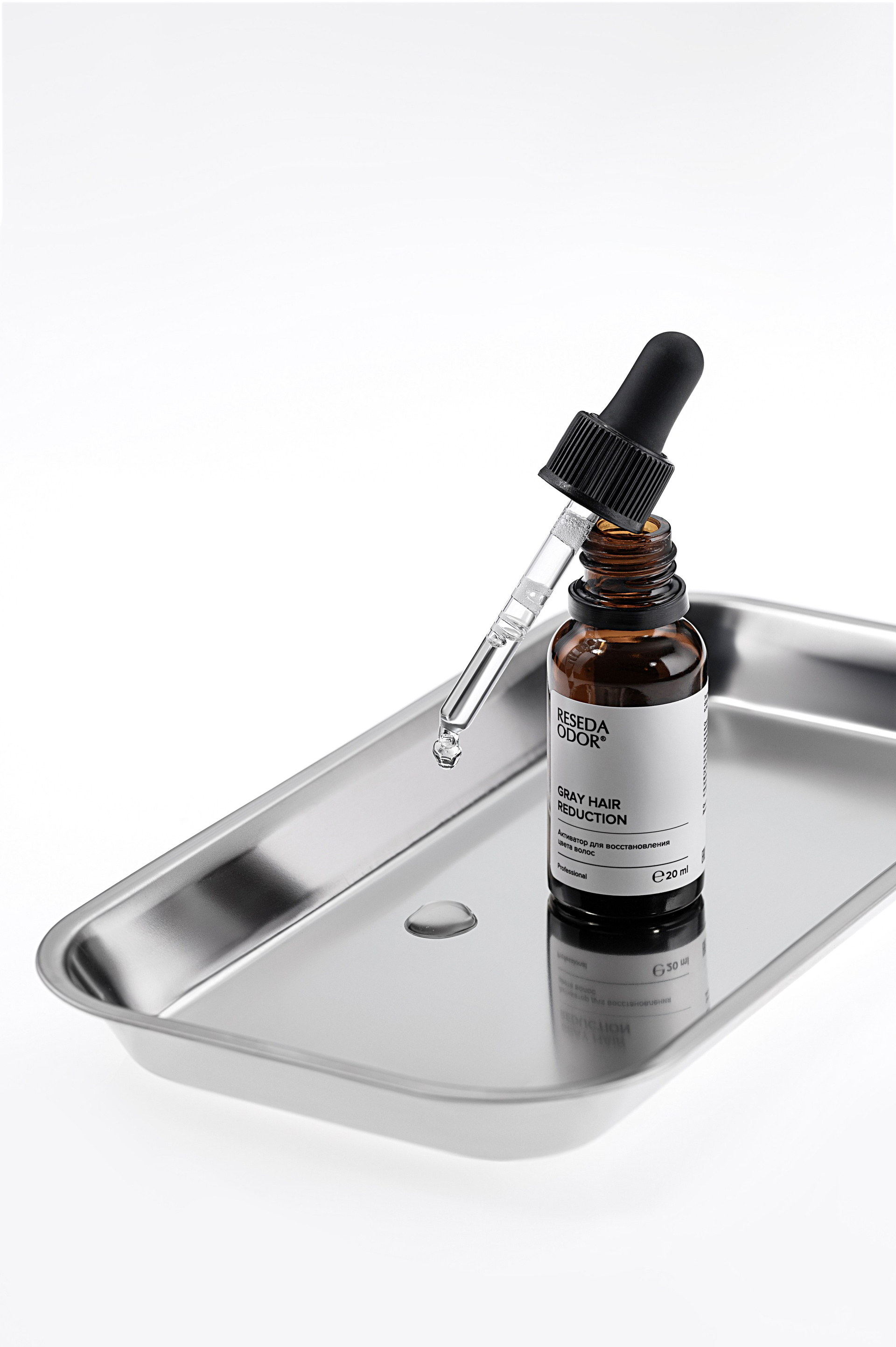 В категории косметики визуал часто либо уходит в слишком «стерильную лабораторию», либо наоборот — в абстрактную beauty-эстетику без ощущения эффективности. Для Reseda Odor было важно найти баланс: сохранить ощущение клинической точности, но при этом сделать изображение живым, премиальным и понятным для клиента.